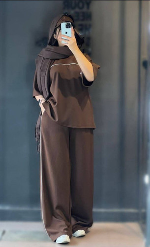ست تیشرت و شلوار زنانه زمستانه آستین نواری